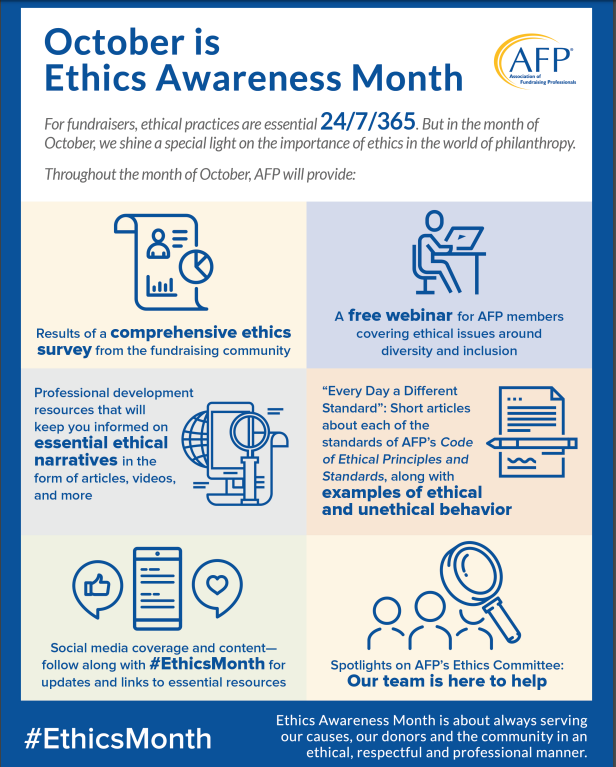 - Association of Fundraising Professionals, Ethics Awareness Month!, October 2019