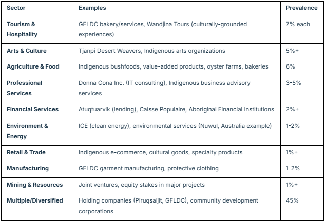 While Canadian-specific documentation is limited, the scoping review identified several high-embedded Indigenous social enterprises emphasizing cultural and environmental values: