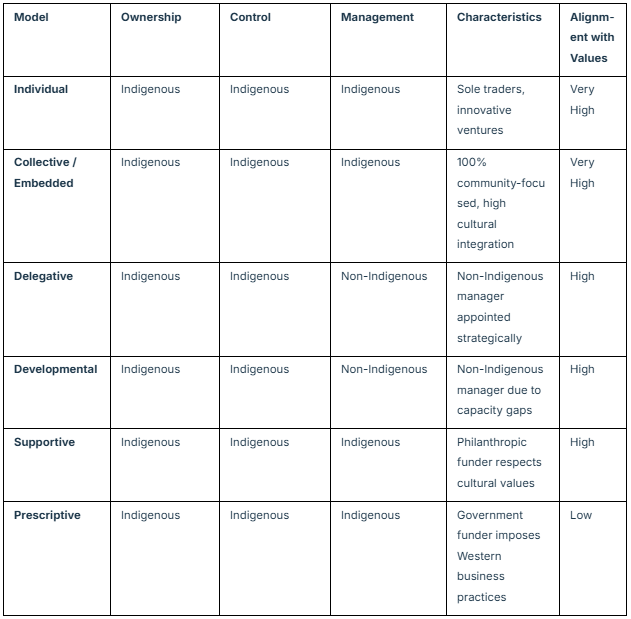 Unlike conventional nonprofits dependent on donations and grants, or private businesses focused primarily on profit, Indigenous social enterprises operate on a hybrid model —pursuing community benefit through sustainable, earned-income business operations. Critically, research indicates that models with 100% Indigenous ownership, control, and management are more likely to improve health and wellbeing by strengthening self-determination, culture, and community resilience.[1]