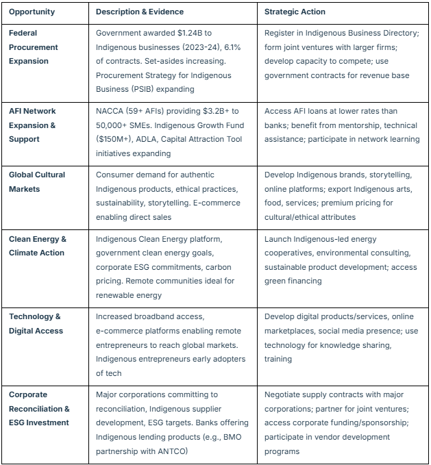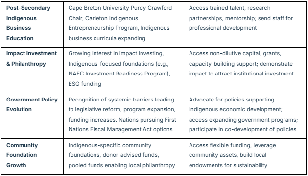 Yet systemic barriers remain — the legacy of the Indian Act, geographic remoteness, insufficient capital, governance complexity, and ongoing discrimination. Progress is evident: federal procurement has expanded; AFI networks continue to develop; government and corporate commitments to Indigenous economic development have increased. But demand far outpaces available support.
