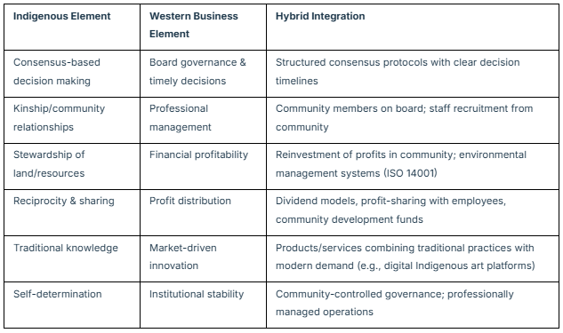Blending of traditional cultural values (reciprocity, stewardship, kinship) with Western business methods